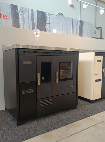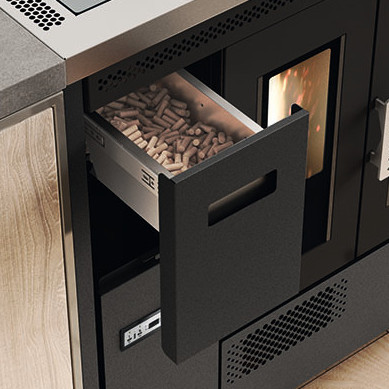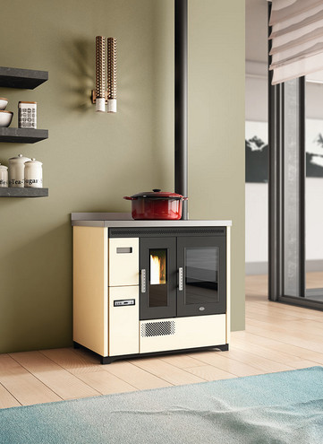 Egy gazdaságos pellet kályha hitelesített sütővel. Köszönhetően a pellet töltéshez kényelmes elülső fióknak, az óriási acél főzőlap (90 cm) teljesen kihasználható. Az elektromos rendszere lehetővé teszi a kályhának, hogy a szobában kívánt hőmérsékletnek megfelelően legyen beállítva, ugyanígy a sütő hőmérséklete is állítható (120 és 240 °C között).