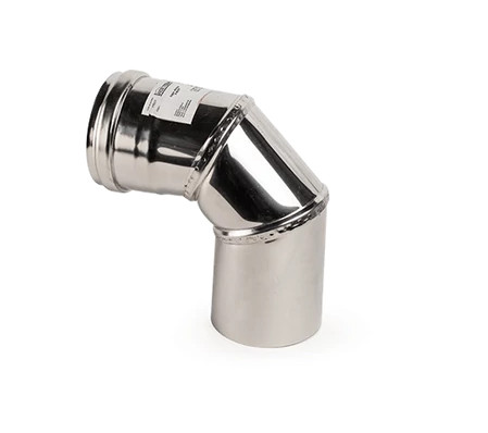 INOX 90°-os rozsdamentes füstcső könyök - fémszínű (Ø80 mm)