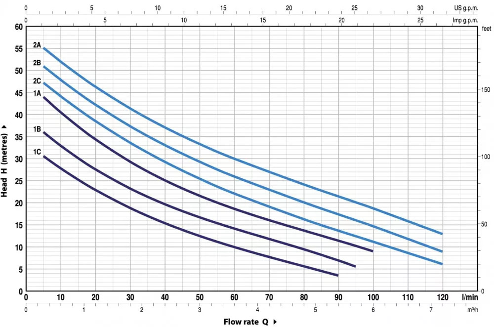A Pedrollo FUTURE JET szivattyúk elnyújtott jelleggörbéjüknek köszönhetően sokkal több víz szállításra alkalmasak mint az azonos teljesítményű motorral szerelt hagyományos JET szivattyúk.
