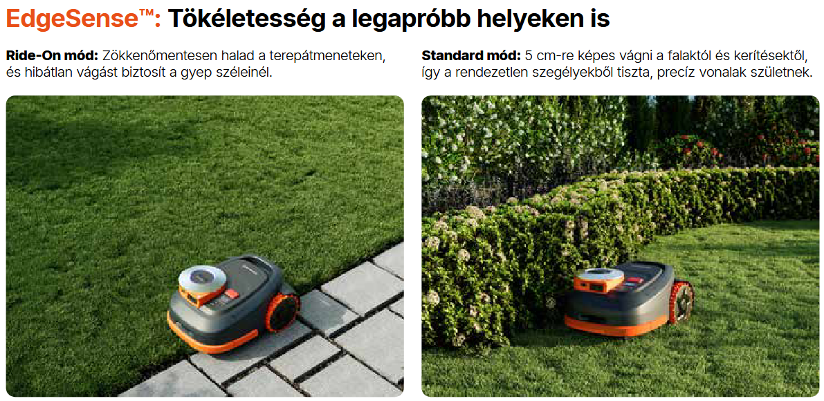 • A EdgeSense™ technológiával a robot akár 5 cm távolságra is precízen vág falaktól, kerítéstől vagy szegélyektől.