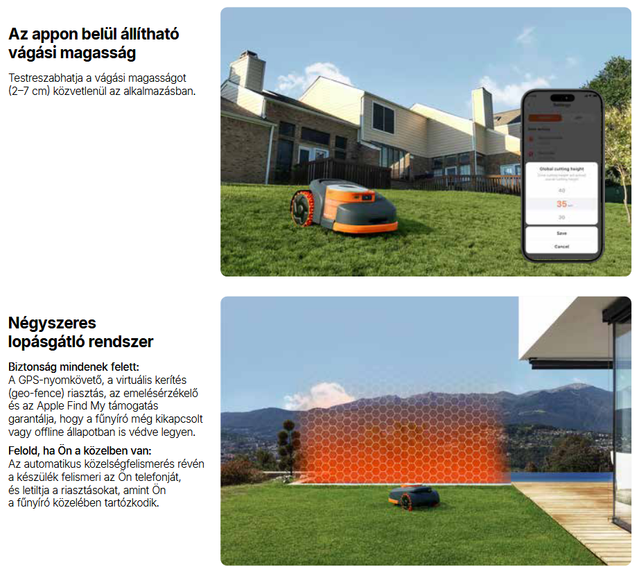 • Csak helyezd a robotot a gyepre, és az önállóan feltérképezi a kertet.